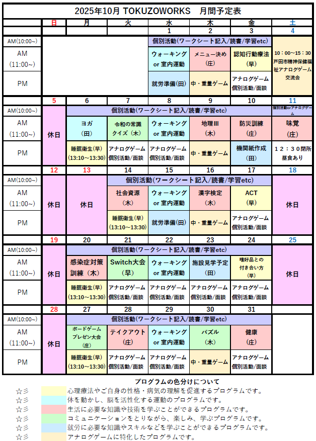 TOKUZO WORKS戸田公園の10月の月間スケジュールをご案内させていただきます!