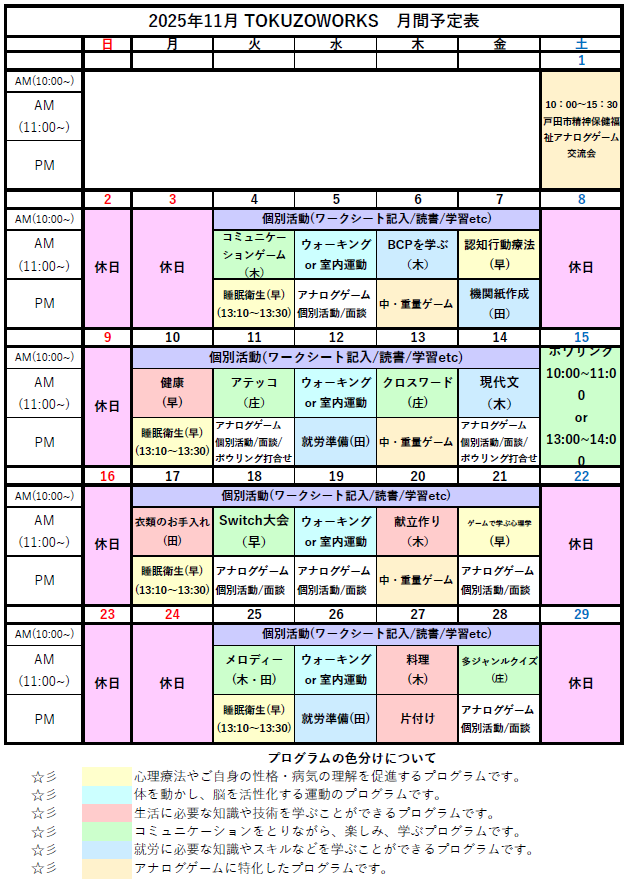 TOKUZO WORKS戸田公園の11月の月間スケジュールをご案内させていただきます!